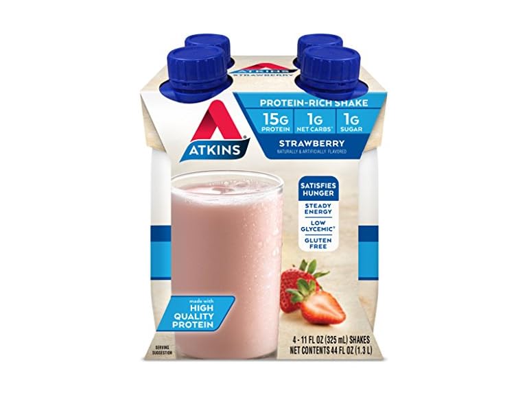 - (1) Atkins Gluten Free Protein-Rich Shake, Strawberry, 4 Count