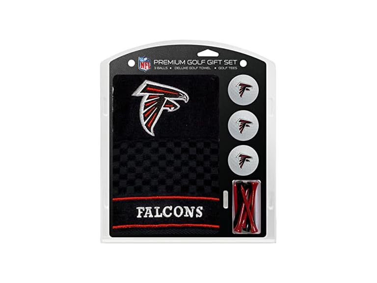 - (1) Team Golf NFL Atlanta Falcons Gift Set: Embroidered Golf Towel, 3 Golf Balls, and 14 Golf Tees 2-3/4" Regulation, Tri-Fold Towel 16" x 22" & 100% Cotton