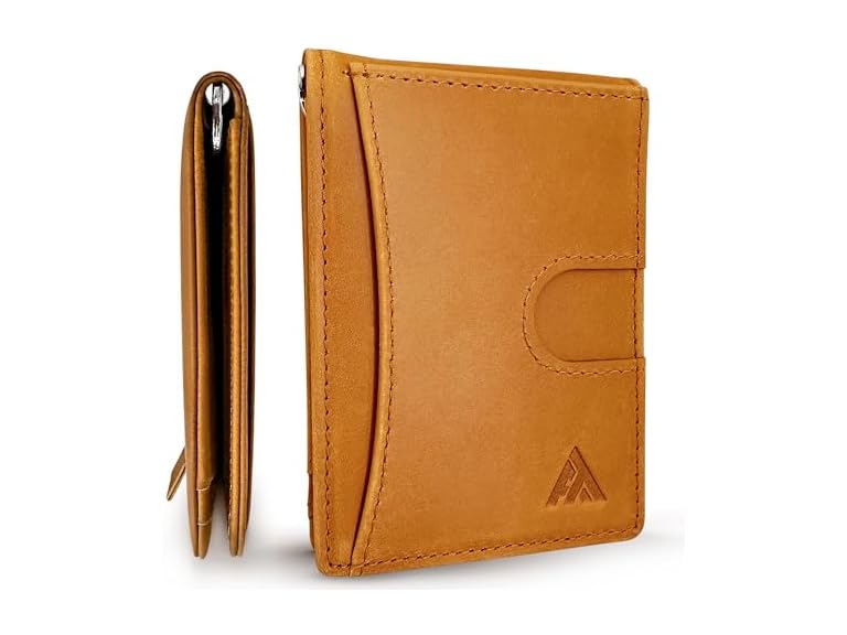 - (1) Atlas Trace Minimalist wallet for men slim front pocket wallet with money clip combo bifold leather wallet with pull tab credit card holder RFID blocking (Hybrid, Tan)