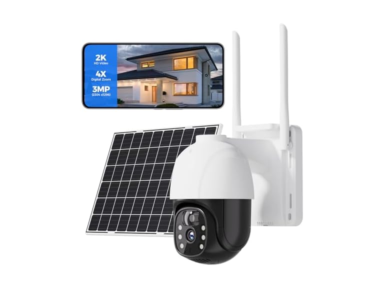 - Solar Powered & Wireless - The solar panels of this security camera convert sunlight into electrical energy, which is stored in a built-in high-capacity battery. The solar panels and built in battery ensures continuous power supply even on rainy days. The wireless security camera supports 2.4G WiFi (5G WiFi is NOT supported), enabling a truly wireless connection and installation. You can install it anywhere without worrying about cables, achieving a genuinely convenient setup.