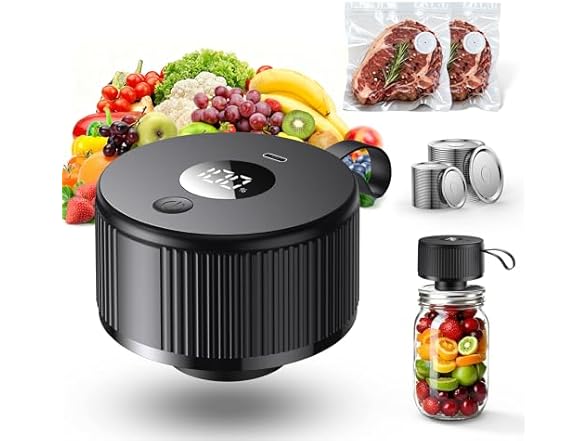 - 🥦 【Reduce Food Waste – Keep Food Fresh 5x Longer】Our powerful vacuum sealer for jars removes oxygen effectively—the main cause of freezer burn and spoilage. Preserve flavor, texture, and nutrients in foods like meats, veggies, coffee, and nuts.