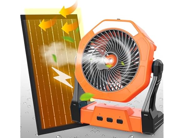 - ☀【10W High Efficiency Solar Panel】Our solar panels' charging efficiency and light sensitivity are higher than those of 4w/7w, made of monocrystalline silicon. Using the photovoltaic effect continuously provide power for camping fan, also be used as outdoor emergency power source for mobile phones, flashlights, etc.(Compared with the integrated solar fan, our fan can be placed in the shade while charging by solar panel. Avoid fan sun exposure and accidents)