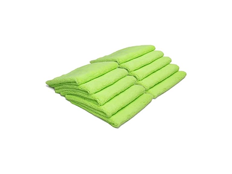 - (1) Autofiber [Elite] Edgeless Two-Pile Microfiber Detailing Towel (16"x16") Green - 10 Pack | All-Purpose Detail Rag | High-Pile, Low-Pile | Interior Towel