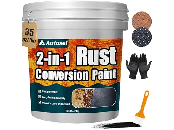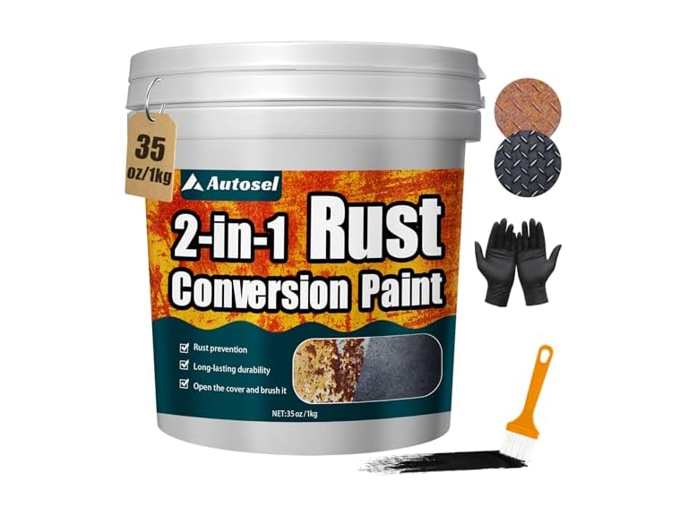- 【Ultimate Rust Converter & Metal Primer – One-Step Seal & Protect】 Autosel 2-in-1 rust converter & metal primer transforms rust into a hard, paintable surface while sealing out air and moisture. This rust conversion paint combines a rust reformer, rust neutralizer, and metal primer paint in one — no sanding or separate primer needed