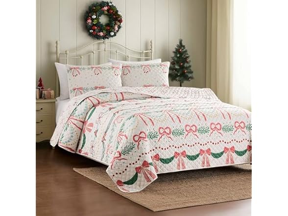 - (1) Avanti Linens - King Quilt Set, Reversible Bedding with Matching Shams, Medium Weight Bed Set, Holiday Room Decor (Bows & Branches)