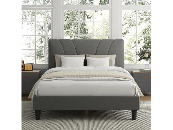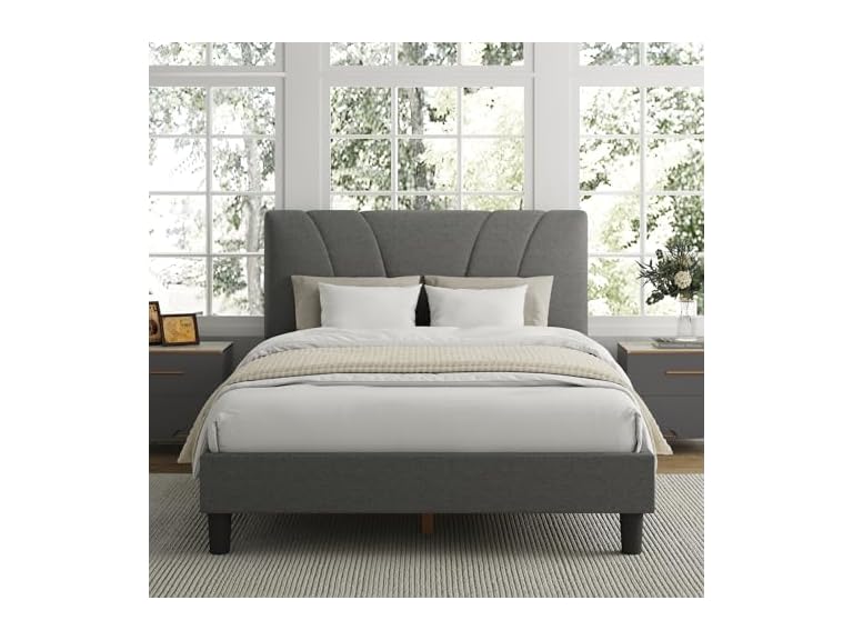 - STYLISH AND COMFORTABLE: Wrapped in premium linen fabric with dense foam padding, this bed frame blends modern simplicity with soft comfort. The sleek silhouette and neutral tones — Light Grey — complement any décor, adding an elegant and inviting touch to your bedroom.