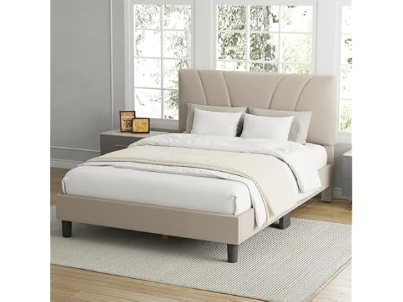- STYLISH AND COMFORTABLE: Wrapped in premium linen fabric with dense foam padding, this bed frame blends modern simplicity with soft comfort. The sleek silhouette and neutral tones — Beige — complement any décor, adding an elegant and inviting touch to your bedroom.