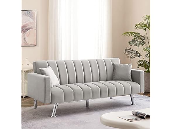 - (1) AWQM Futon Sofa Bed, Upholstered Convertible Sofa Bed with 2 Pillows, Modern Sleeper Sofa Couch Recliner with Wooden Frame and Metal Legs, Comfortable Velvet Sofa for Living Room Bedroom Office (Grey)