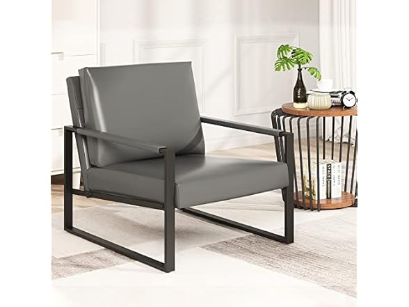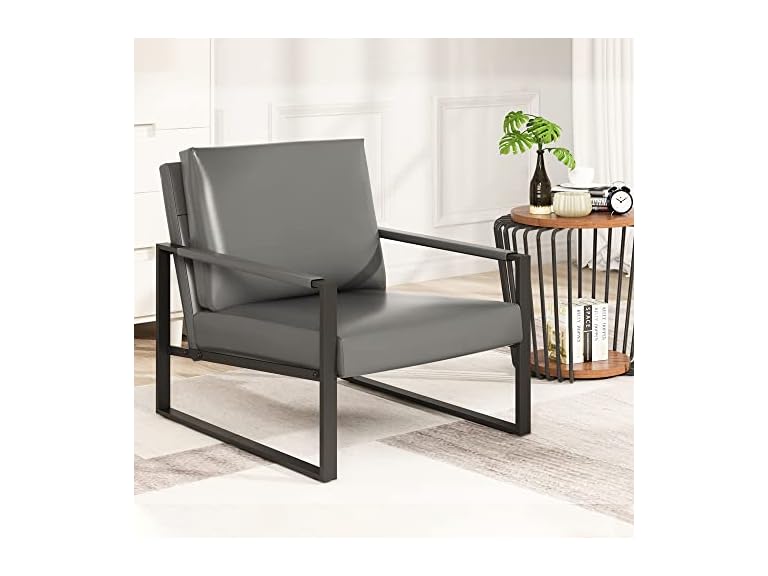 - (1) AWQM Modern PU Leather Accent Chair Arm Chair with Extra-Thick Padded Backrest and Seat Cushion Sofa Chairs for Living Room Bedroom, 105 Degree Slant Back, Non-Slip Adsorption Feet, Grey