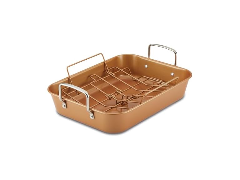 - Ayesha Curry Nonstick Roaster / Roasting Pan with Rack - 11 Inch x 15 Inch, Brown