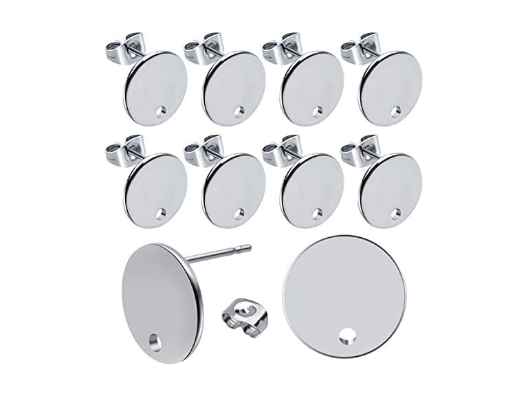 - (1) Aylifu 12mm Stud Earring Findings, 20pcs Stainless Steel Round Earring Studs Blank Earring Post with Loop and 20pcs Butterfly Earring Backs for Earring Making