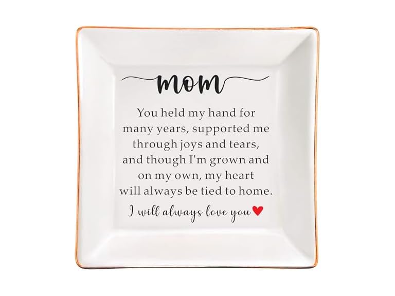 - Keepsake: AZVAUUY has a variety of ring plates with sweet and touching messages, and it beautifully captures the warmth you want to convey. These ring dishes make great gifts for loved ones, including your family, bride, groom, friends, coworkers, or even yourself.