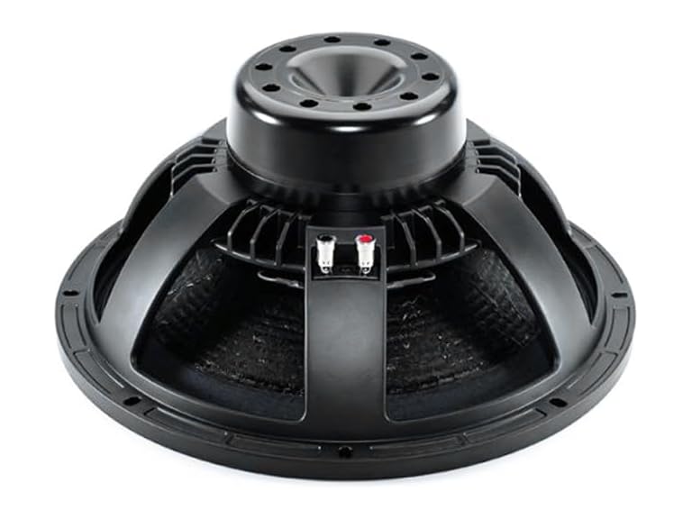 - This 15-inch speaker driver is designed for high-efficiency audio performance, featuring an 8-ohm impedance and handling up to 1600 watts of continuous power. It offers a wide frequency range of 45–2000 Hz with a sensitivity of 98 dB. The 100 mm aluminum voice coil is wound on a glass fibre former, with a 23 mm winding depth and an 11 mm magnetic gap. A flux density of 1.2 Tesla ensures strong magnetic control for precise and dynamic sound reproduction.