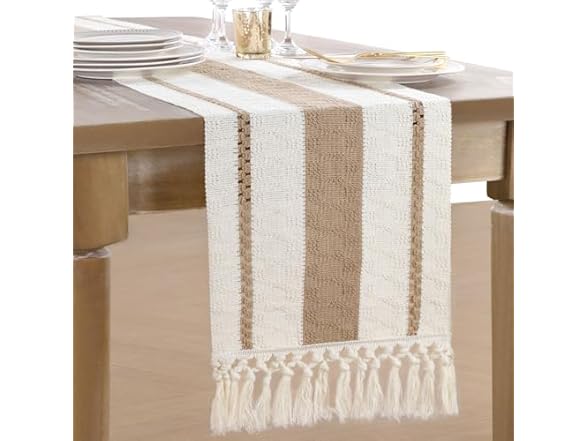 - B-COOL Farmhouse Table Runner Macrame Decor: 13x108 Inches Cream & Brown Bicolor Rustic Fall Table Runner for Dining Table Centerpiece Thanksgiving Table Decoration