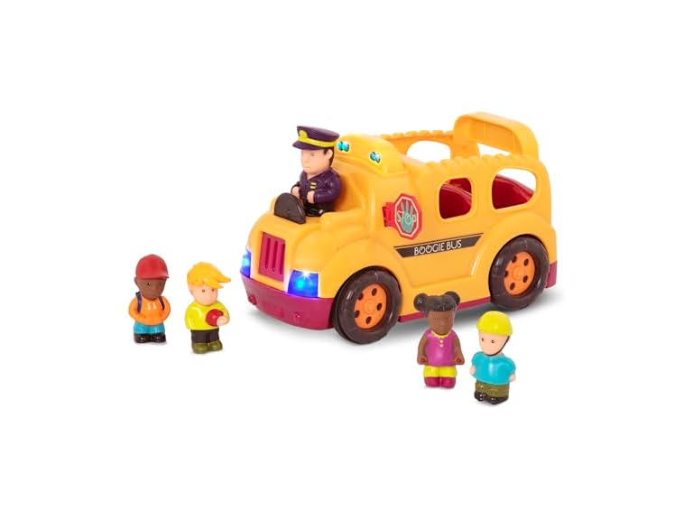 - (1) B. toys – Interactive Yellow School Bus Toy with Lights, Sounds & Dancing Passengers – Educational Vehicle Playset for Toddlers & Kids with 5 Figures – Auto – Off Battery Feature, Ages 18+ Months