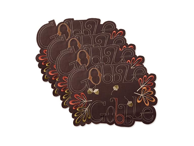- (1) DII Fall Table Decorations, Thanksgiving, Placemat Set, 13x19, Embroidered Gobble Gobble, 4 Count