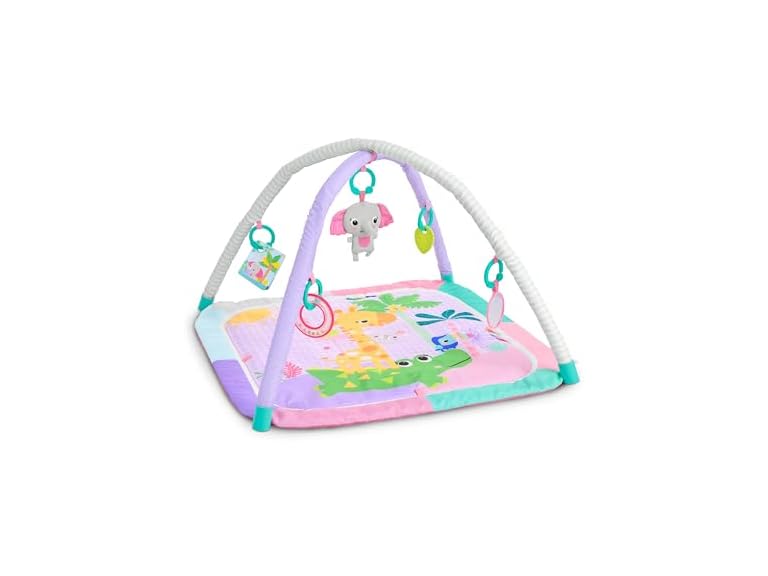 - (1) Bright Starts Wild Wiggles Sweet Safari Foldaway Baby Play Gym & Mat, Foldable with 5 Removable Toys, Machine-Washable Mat, for Ages 0-36 Months