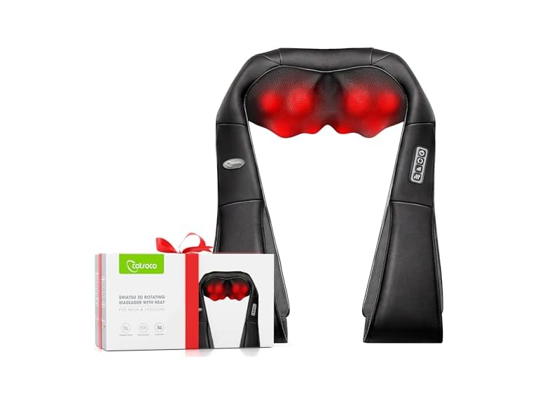 - 【Soothing Heat & Auto Shut-Off for Safety】The built-in heat function (up to 107.6°F / 42°C) enhances the deep tissue massage by promoting blood circulation and soothing sore muscles. It’s perfect for massager for neck and shoulder pain relief. The neck and shoulder massager with heat includes a 15-minute auto shut-off feature to ensure safe use. You can also turn the heat off manually.