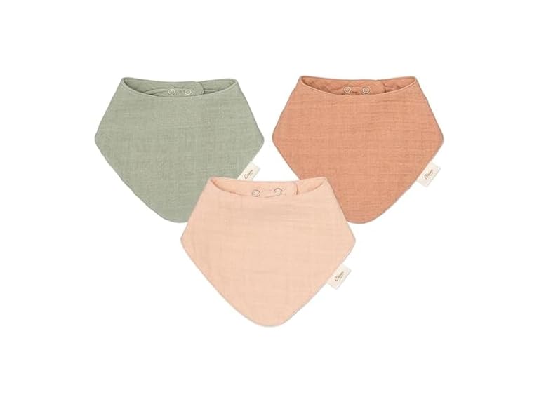 - (1) Crane Baby Soft Muslin Baby Bib Set, Adjustable and Absorbent Bandana Style Bibs for Boys and Girls, 3 Piece, 18.5” x 9” - Choose Style