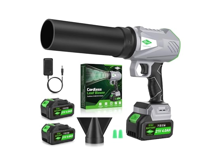 - 【DUAL 4000mAh BATTERIES & 21V HIGH POWER】: Power through your yard work without interruption. Our 2 rechargeable batteries deliver extended runtime, while the 21V motor provides relentless airflow. Quick-swap design eliminates downtime, and the included fast charger ensures quick charging when needed.