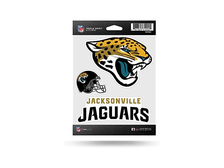 - (1) Rico Industries NFL Jacksonville Jaguars Die Cut Triple Spirit Sticker Sheet, 5" x 7", Primary, 3-Piece