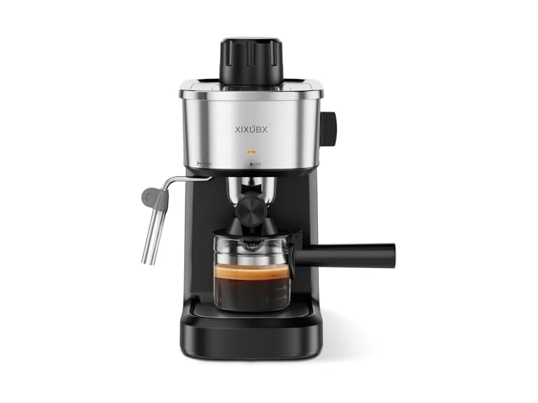 - Fast Brewing & Precise Espresso: 6 bar pressure and an 800W heating system brew rich coffee in just 2 minutes. The easy-pour glass cup with clear markings ensures precise measurements, delivering fresh, authentic espresso quickly and effortlessly