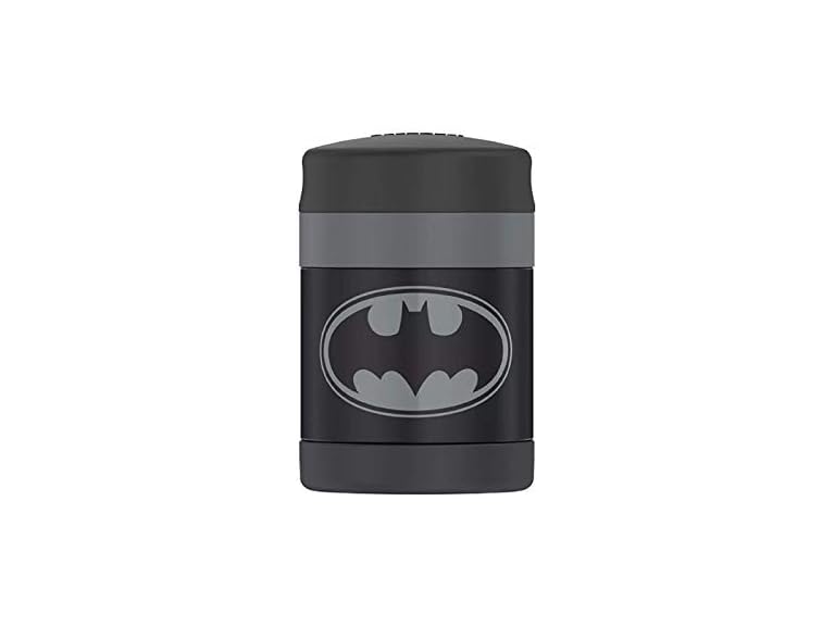 The Thermos 10 oz. Kid's Funtainer Vacuum Insulated Stainless Steel Food Jar keeps hot foods hot and cold foods cold. And since it is designed for kids, it is also colorful with fun designs! Send them to school with mom's homemade soup or pack it up with yogurt and berries or apples and peanut butter. This handy kid's food container has a wide mouth that is easy to fill, clean, and eat from. It conveniently includes a full-size plastic spoon that folds down to fit inside of the lid for easy storage. Features: Thermos vacuum insulation technology for maximum temperature retention. Keeps food hot for up to 5 hours or cold for up to 7 hours. Durable stainless steel construction. Cool to the touch exterior with hot contents and sweat-proof with cold food. Wide mouth design is easy to fill, clean, and eat from. Includes spoon. Dishwasher safe; Hand washing is recommended.