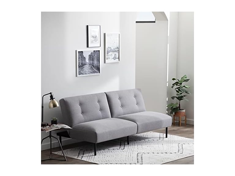 - RELIABLY MADE: This gray sofa bed couch is durably constructed with a solid wood frame, black plastic legs, and thick cushions finished in your choice of linen fabric, velvet, or faux leather