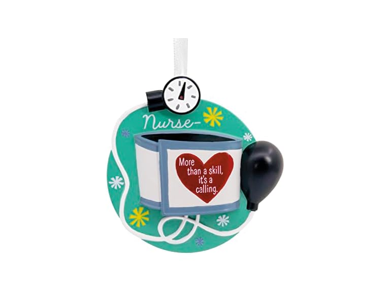 - Recognize a healthcare professional's skill and care with this Hallmark Christmas ornament. Design features a blood pressure cuff and an affirming message. Message: Nurse - more than a skill, it's a calling.