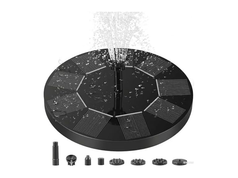 - ☀【6 Different Spray Heads】The solar water pump has 6 different water spray modes, which allow the device to change the spray height and water pattern. This solar water fountain is the perfect addition to your garden or yard, the sprayed water attracts birds, butterflies and dragonflies, bringing so much life to your garden.