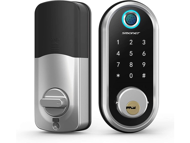 - Smart Bluetooth Keypad Lock - Not only bring you security and trust, but also bring you a brand-new smart home. Five ways to unlock your door - APP, Keypad, Fingerprint, IC Fob and Mechanical Keys. Paring with Smonet wifi gateway, device user could remotely control your smart door lock anywhere anytime, set up codes remotely and check real-time access log.