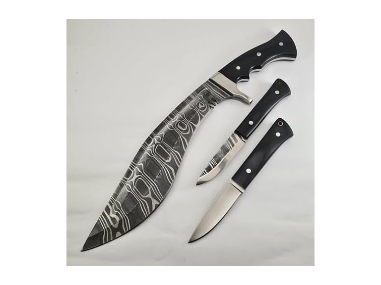 - (1) Vetus Knives Kukri Knife Set Fixed Blade Kukri Knife - Damascus Steel Hunting Knife with Sheath, Full Tang Survival Knives with Wood Handle for Bushcraft Camping Fishing Hiking BBQ, Father's Day Gifts Box