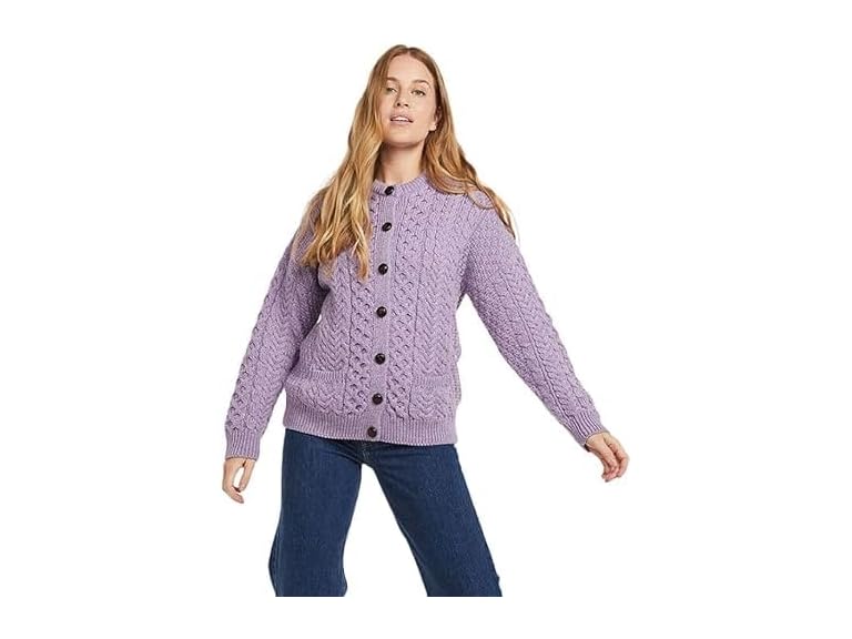 - (1) Aran Woollen Mills Women's Long Sleeve Aran Lumber Cardigan with Pockets Lilac