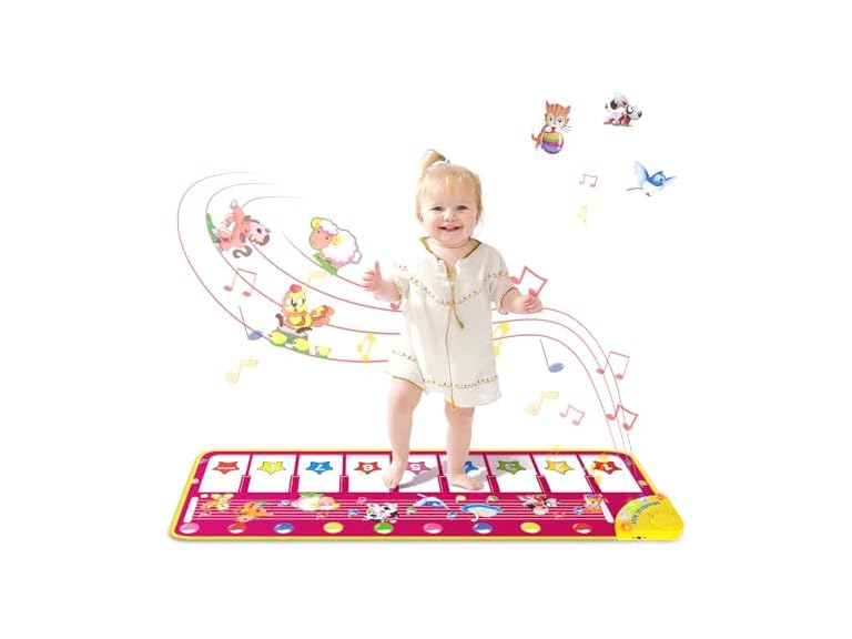 - 【Multifunctional Floor Piano Mat】Kids piano mat with 8 piano keys, 8 animal sounds and the "switch" button to change modes, the rich music helps baby's listening development. Foldable floor piano features clear sound and flashing light, which will stimulate your child's curiosity and allow them to play for hours without getting bored or crying. You can also adjust the volume to suit your child's needs.