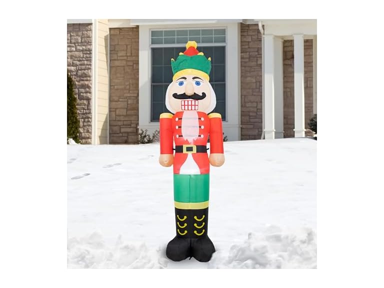 - Festive Christmas centerpiece: This Christmas inflatable outdoor decoration measures 24" W x 20" D x 96" H (8' H) and weighs 3.4 lbs. The electrical cord measures 76" L. This merry nutcracker inflatable will add festive fun to a backyard, front porch, or patio.