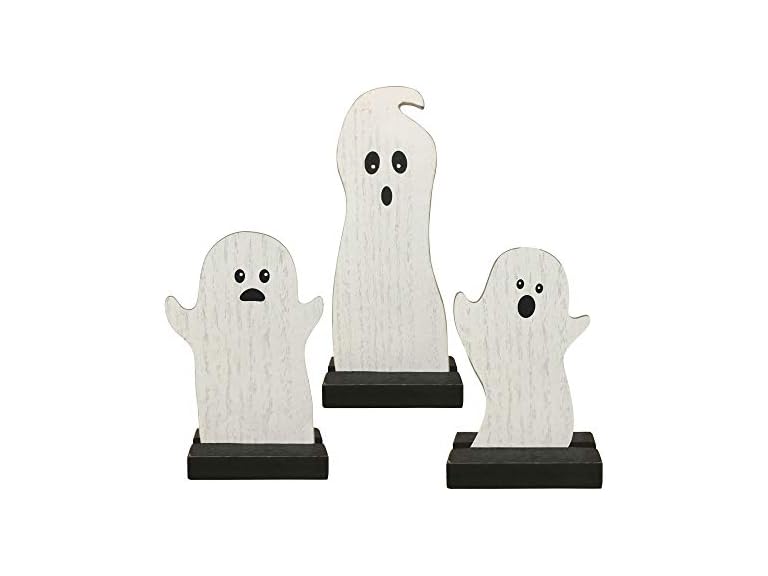 - A set of 3 wooden ghost sitters to add a spooky touch to your Halloween Decorating