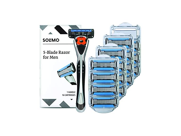 Solimo 5-Blade MotionSphere Razor for Men features a multi pivot design to follow the contours of your face and a beard trimmer for shaving goatee, sideburns and under nose. The razor cartridge is hypoallergenic, includes a lubricating strip with vitamin E, and has an anti-clog design for quick rinse. To load refill cartridge, push razor handle into a cartridge as it sits in the dispenser until it clicks. Cartridges fit Solimo Razor Handles only; does not fit other brands.