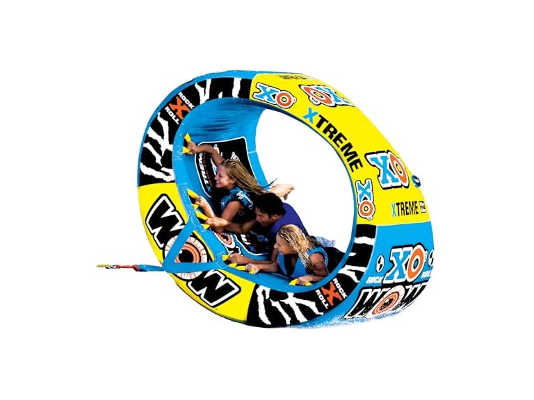 - (1) WOW Sports – XO Xtreme Oval Towable Tube for Boating – 1-3 Person 510 lbs Capacity – Inflatable Boat Tube for Lake Sports – Heavy Duty Nylon Cover – Kids & Adults