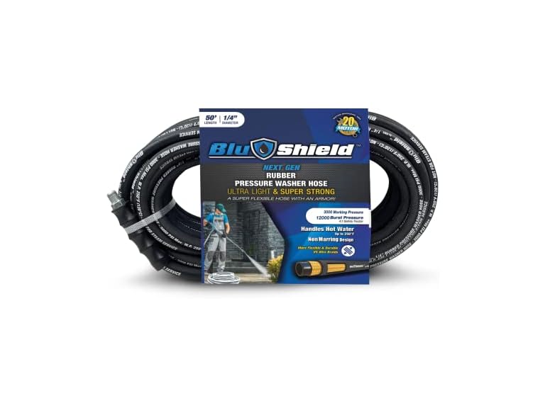 - (1) BLUBIRD BluShield 1/4" Polyester Braided Rubber Pressure Washer Hose, 3100 Psi, Handle 250°F Hot Water, Heavy Duty, 35% Lighter, Flexible (1/4" x 50')