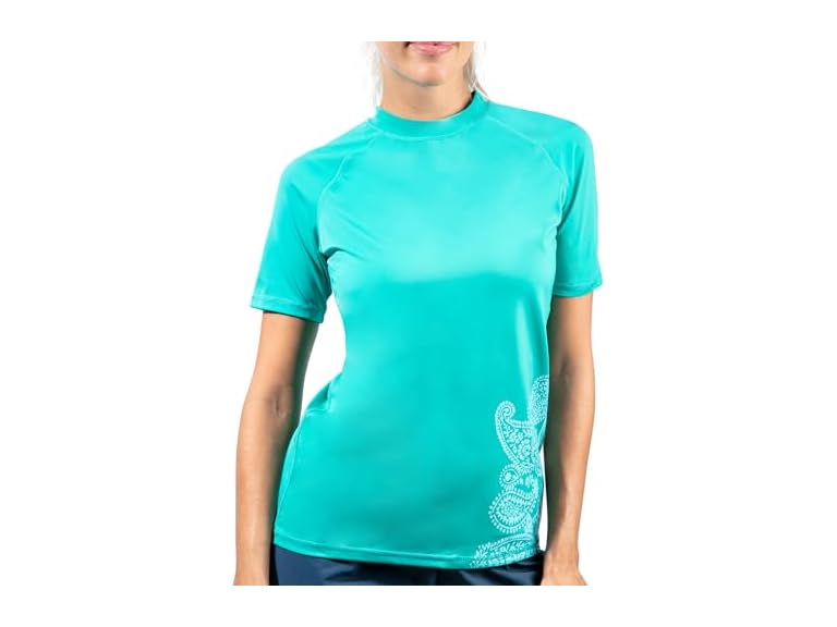 - (1) Kanu Surf Women's Breeze UPF 50+ Short Sleeved Active Rashguard & Workout Top, Lanai Lagoon, Large