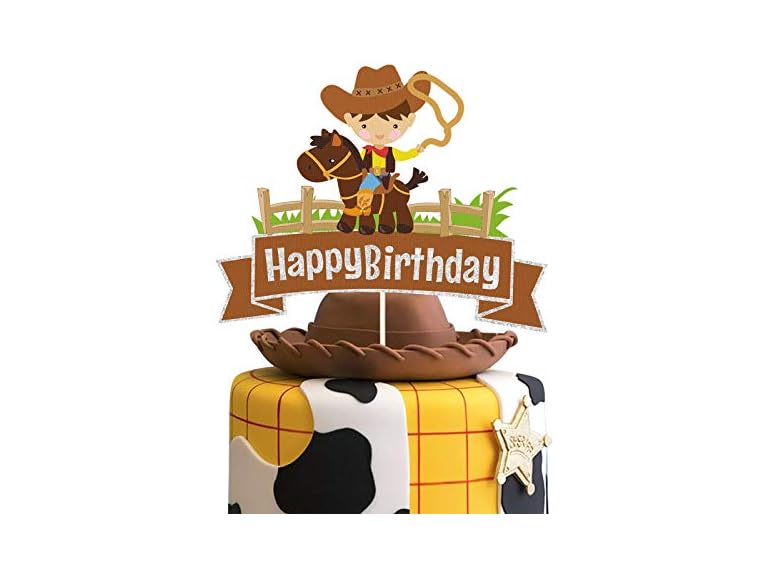 - (1) ChienMin Glitter Cowboy Happy Birthday Cake Topper,Wild West Cowboy Cake Decor, Western Themed Party Decorations for Boys Girls and Kids Birthday or Baby Shower