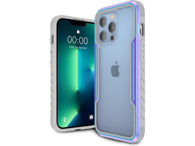 - (1) Shockproof Case Compatible with iPhone 13 Pro Max (2021), Soft Silicone Protective Phone Case Clear, Rugged Aluminum Case for Apple iPhone 13 Pro Max Phone 6.7 inch (Iridescent +Gray)