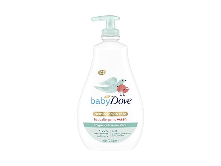 - FROM TIP TO TOE: Baby Dove Fragrance Free Moisture Hypoallergenic Baby Wash (20 oz.) is a gentle, fragrance free baby wash that's suitable for eczema prone skin
