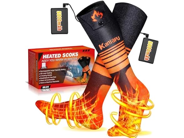 - đ„ă5000 mAh Extra Large Capacity BatteriesăOur heated socks are equipped with two 5000 mAh rechargeable batteries, Providing you with up to 7-8 hours of enduring warmth, and the batteries are light in weight. This ensures that you can easy use the heated socks for a long time to stay warm in cold environments without worrying about running out of power too soon. The large capacity rechargeable battery electric heated socks are perfect for long trips and outdoor sports