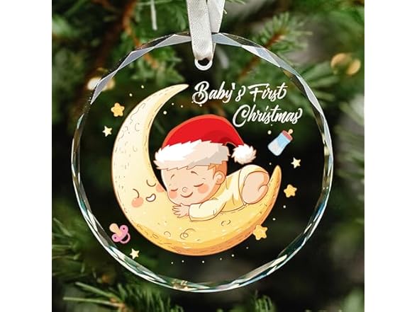 - CHERISHED BABY'S FIRST CHRISTMAS: Looking for the perfect gift for Baby's First Christmas? Our Baby's First Christmas ornament is ideal for celebrating this special occasion. Hang this charming ornament on a shelf, fireplace, wall, or Christmas tree to enhance the holiday cheer and create lasting memories. Ideal for baby's first Christmas ornament , babys first christmas ornament boy, babys first christmas ornament girl.