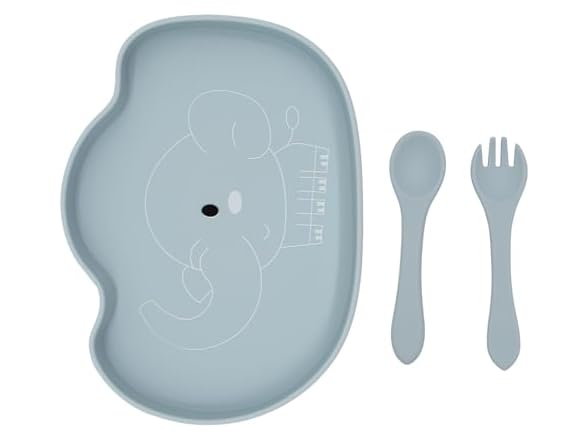 - BabyX Baby Silicone Feeder Set, 3-pcs Zoo Animal-themed Baby Plate with Suction, Spoon and Fork for Babies Toddler Kids, BPA-Free, Baby Utensils Feeding Supplies, Microwave and Dishwasher Safe