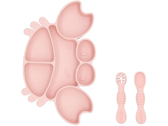- (1) BabyX Silicone Feeding Set (3 PCs), Baby Plate with Suction Cup, Training Spoon and Fork, BLW Utensils for Toddler Kid, BPA-Free, Microwave/Dishwasher Safe