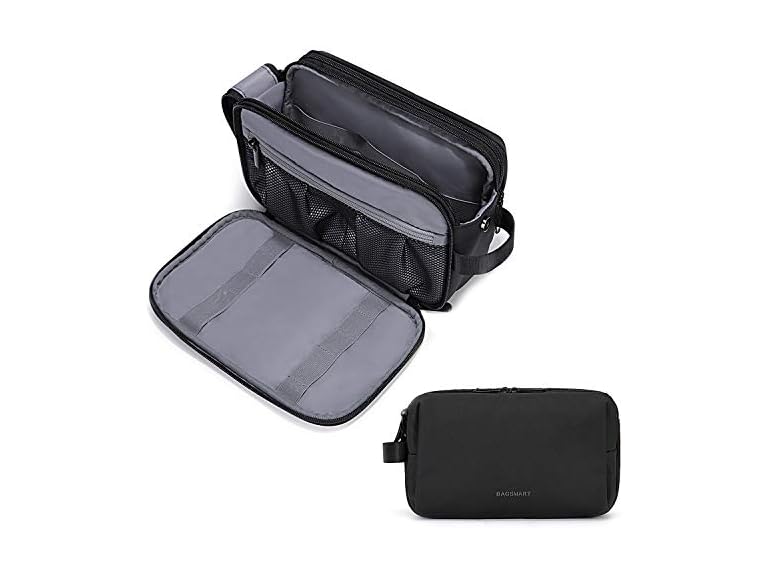 - BAGSMART Toiletry Bag for Men, Travel Toiletry Organizer Dopp Kit Water-resistant Shaving Bag for Toiletries Accessories, Door Room Essentials, Black-medium