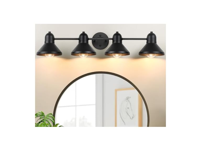 - š¤ćSuperior Lighting Effectć The 4-light design provides ample and comfortable illumination for any space, whether you need task lighting for your bathroom mirror, ambient lighting for your bedroom, or accent lighting for your cabinets or dressing table. This bathroom vanity light fixture requires four E26 base bulbs and can work well with dimmable bulbs (Bulbs and Dimmer Switch Not Included) to meet your lighting needs.