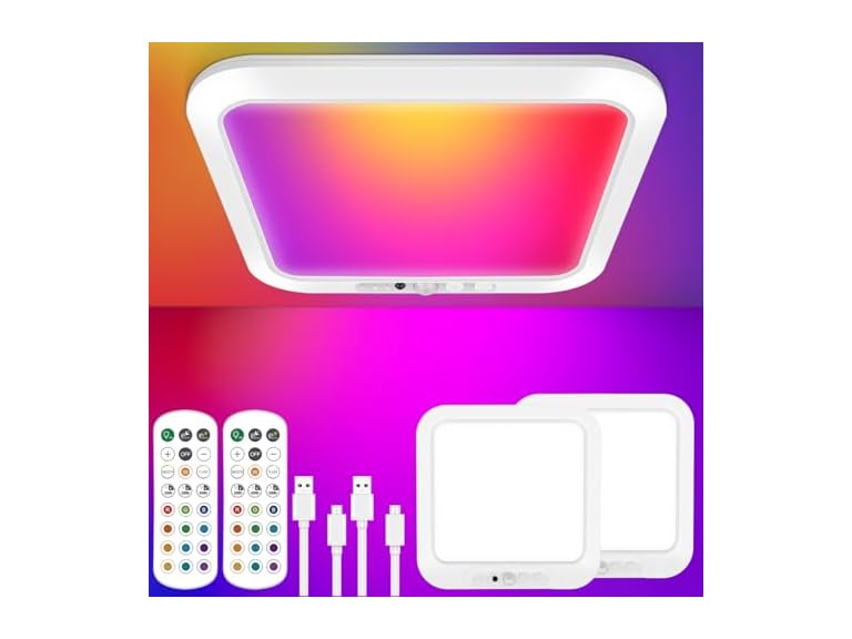 - 【13 Changeable Colors & Stepless Dimming & Timer】Our wireless LED shower light features 12 RGB colors & cool white light. What is more, with the stepless dimming capabilities ranging from 10% to 100%, you can effortlessly customize your own lighting needs as you want. Additionally, the battery powered ceiling light includes a timer function, allowing you to set durations of 15, 30, or 60 minutes for added convenience and ultimate control over your lighting experience.